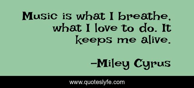 This page presents the quote "Music is what I breathe, what I love to do. It keeps me alive.". Author of this quote is Miley Cyrus. This quote is about me, breathe, love, affection,.