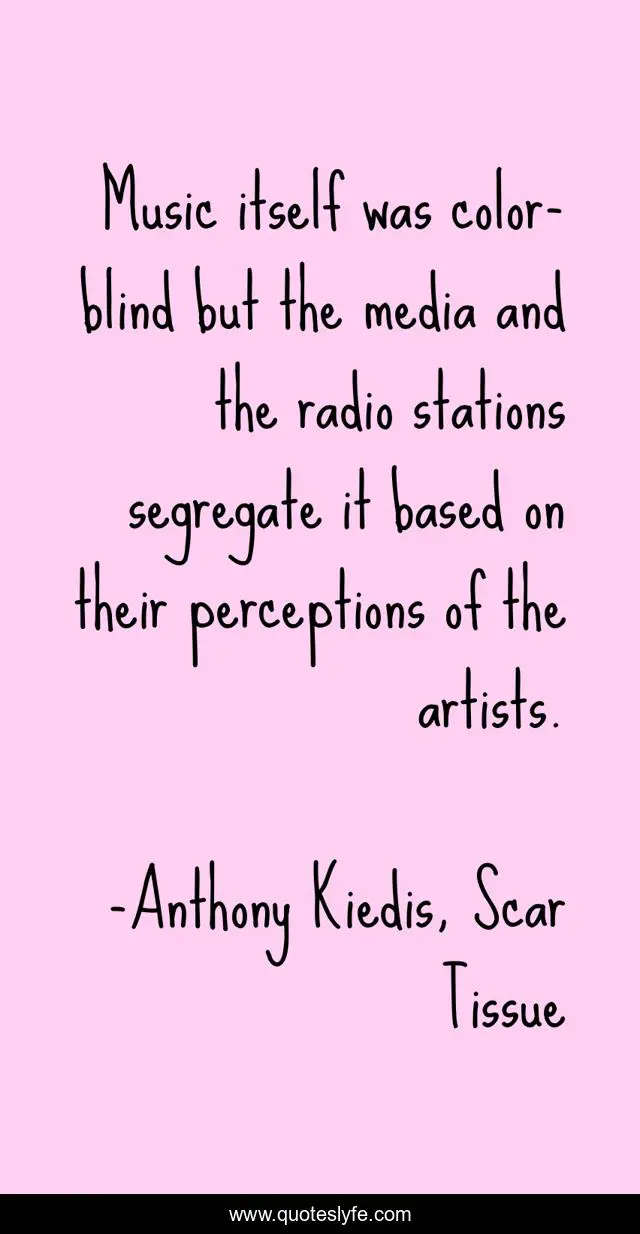 This page presents the quote "Music itself was color-blind but the media and the radio stations segregate it based on their perceptions of the artists.". Author of this quote is Anthony Kiedis, Scar Tissue. This quote is about media, music, segregation,.