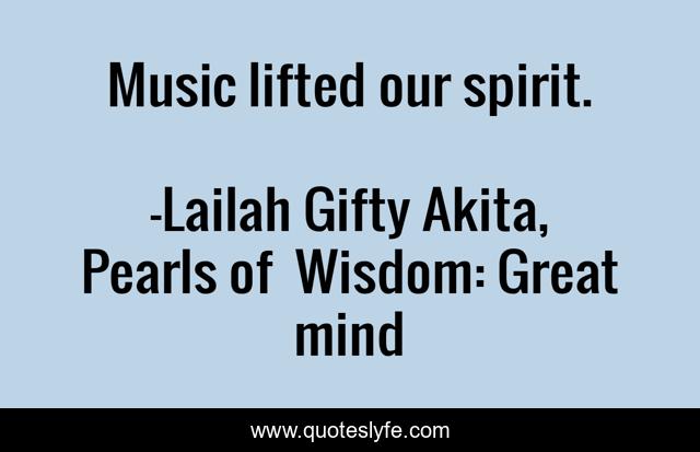 "Lailah Gifty Akita, Pearls of Wisdom: Great mind Quotes." Quoteslyfe.com, 2025. Sun. 07 Dec. 2025. <https://www.quoteslyfe.com/quote/Music-lifted-our-spirit-79664>.