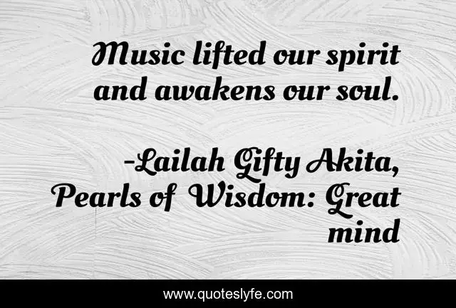 "Lailah Gifty Akita, Pearls of Wisdom: Great mind Quotes." Quoteslyfe.com, 2025. Sun. 07 Dec. 2025. <https://www.quoteslyfe.com/quote/Music-lifted-our-spirit-and-awakens-our-79671>.