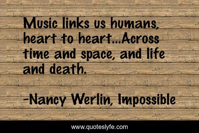 "Nancy Werlin, Impossible Quotes." Quoteslyfe.com, 2025. Sat. 06 Dec. 2025. <https://www.quoteslyfe.com/quote/Music-links-us-humans-heart-to-heart-21295>.