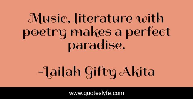 This page presents the quote "Music, literature with poetry makes a perfect paradise.". Author of this quote is Lailah Gifty Akita. This quote is about learner, literature, music, poetry, self-education,.
