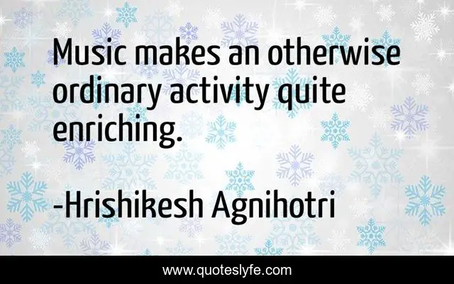 This page presents the quote "Music makes an otherwise ordinary activity quite enriching.". Author of this quote is Hrishikesh Agnihotri. This quote is about enriching, ordinary, music, activity,.