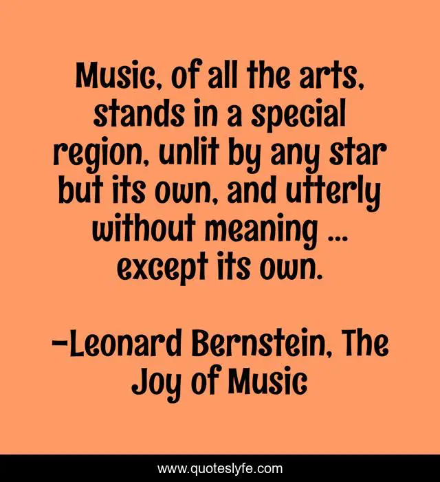 "Leonard Bernstein, The Joy of Music Quotes." Quoteslyfe.com, 2025. Tue. 09 Dec. 2025. <https://www.quoteslyfe.com/quote/Music-of-all-the-arts-stands-in-78769>.