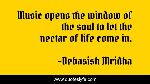 "Debasish Mridha Quotes." Quoteslyfe.com, 2025. Mon. 08 Dec. 2025. <https://www.quoteslyfe.com/quote/Music-opens-the-window-of-the-soul-74835>.