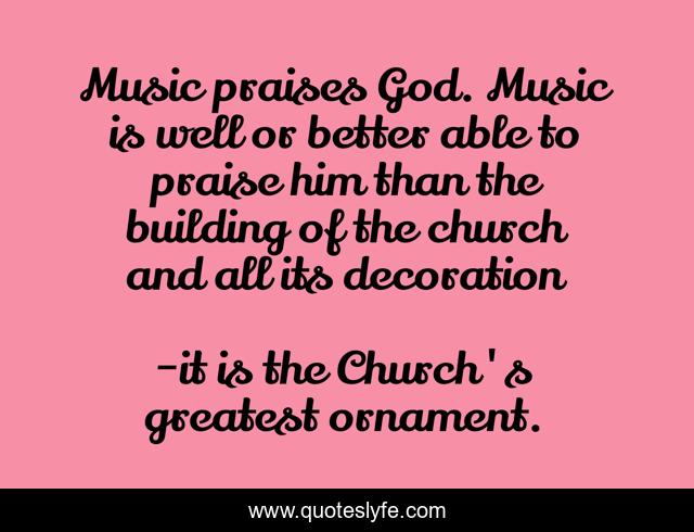 This page presents the quote "Music praises God. Music is well or better able to praise him than the building of the church and all its decoration". Author of this quote is it is the Church's greatest ornament.. .