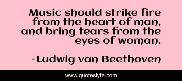 This page presents the quote "Music should strike fire from the heart of man, and bring tears from the eyes of woman.". Author of this quote is Ludwig van Beethoven. This quote is about eyes, woman, man,.