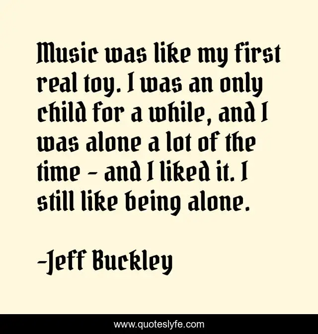 This page presents the quote "Music was like my first real toy. I was an only child for a while, and I was alone a lot of the time - and I liked it. I still like being alone.". Author of this quote is Jeff Buckley. This quote is about time, music, child,.