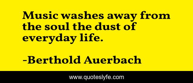 This page presents the quote "Music washes away from the soul the dust of everyday life.". Author of this quote is Berthold Auerbach. This quote is about dust, life, soul,.
