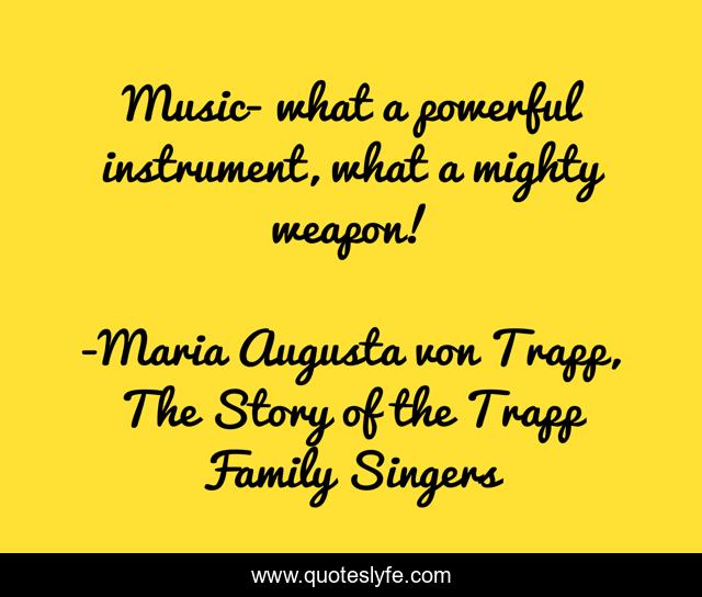 "Maria Augusta von Trapp, The Story of the Trapp Family Singers Quotes." Quoteslyfe.com, 2025. Fri. 05 Dec. 2025. <https://www.quoteslyfe.com/quote/Music-what-a-powerful-instrument-what-a-78755>.