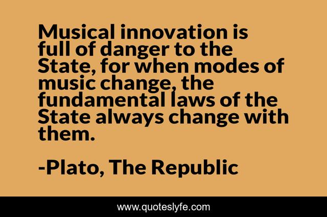 This page presents the quote "Musical innovation is full of danger to the State, for when modes of music change, the fundamental laws of the State always change with them.". Author of this quote is Plato, The Republic. This quote is about state, law, music,.