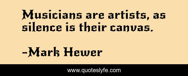 This page presents the quote "Musicians are artists, as silence is their canvas.". Author of this quote is Mark Hewer. This quote is about art, musicians, creativity, artist, music,.