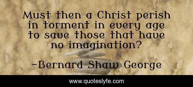 This page presents the quote "Must then a Christ perish in torment in every age to save those that have no imagination?". Author of this quote is Bernard Shaw George. This quote is about cruelty, saint-joan,.