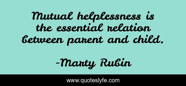 This page presents the quote "Mutual helplessness is the essential relation between parent and child.". Author of this quote is Marty Rubin. This quote is about helplessness, parents, children,.