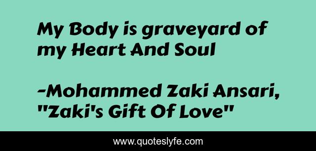 This page presents the quote "My Body is graveyard of my Heart And Soul". Author of this quote is Mohammed Zaki Ansari, "Zaki's Gift Of Love". This quote is about life, death, love, affection,.