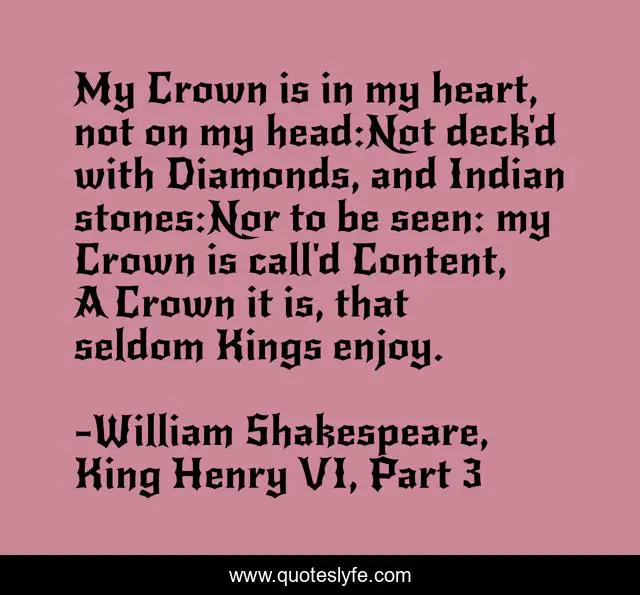 "William Shakespeare, King Henry VI, Part 3 Quotes." Quoteslyfe.com, 2025. Mon. 08 Dec. 2025. <https://www.quoteslyfe.com/quote/My-Crown-is-in-my-heart-not-239185>.