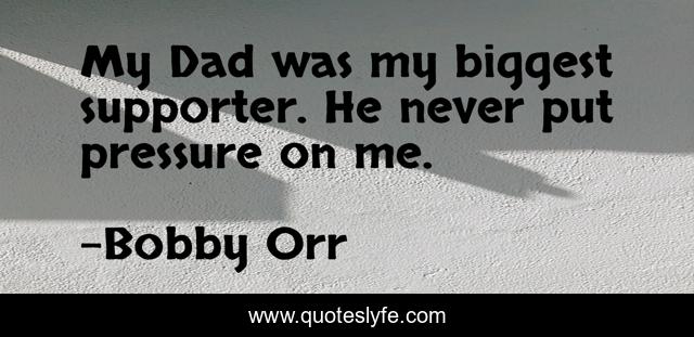 This page presents the quote "My Dad was my biggest supporter. He never put pressure on me.". Author of this quote is Bobby Orr. This quote is about me, pressure,.