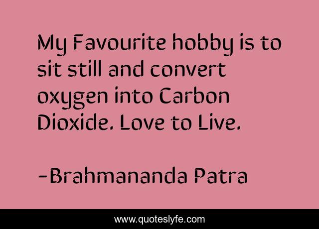 This page presents the quote "My Favourite hobby is to sit still and convert oxygen into Carbon Dioxide. Love to Live.". Author of this quote is Brahmananda Patra. This quote is about hobby, love, affection, living,.