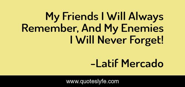 This page presents the quote "My Friends I Will Always Remember, And My Enemies I Will Never Forget!". Author of this quote is Latif Mercado. This quote is about urban, latin, author, freestyle, latif, novel, music, mercado, book,.