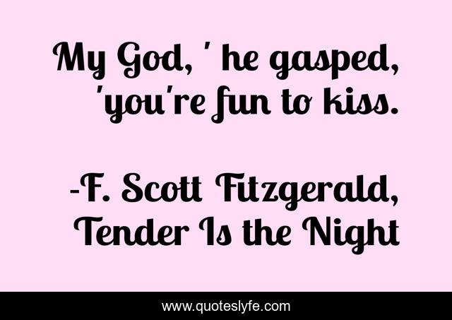 This page presents the quote "My God, ' he gasped, 'you're fun to kiss.". Author of this quote is F. Scott Fitzgerald, Tender Is the Night. This quote is about love, quote, old, affection, quotes,.