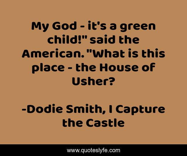 This page presents the quote "My God - it's a green child!" said the American. "What is this place - the House of Usher?". Author of this quote is Dodie Smith, I Capture the Castle. .