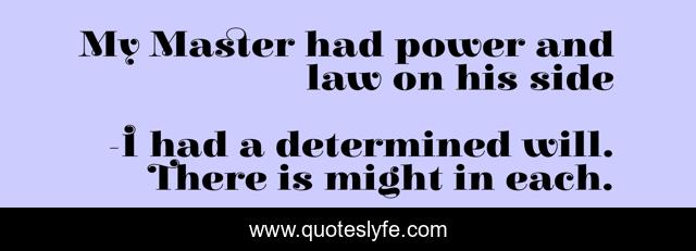 "I had a determined will. There is might in each. Quotes." Quoteslyfe.com, 2025. Mon. 08 Dec. 2025. <https://www.quoteslyfe.com/quote/My-Master-had-power-and-law-on-188286>.