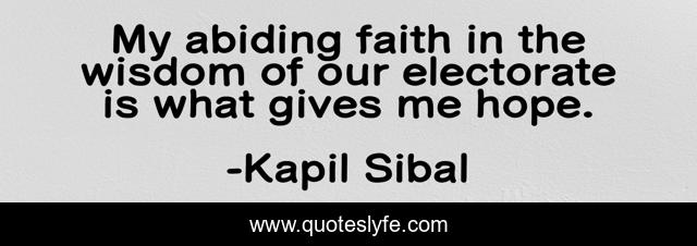 This page presents the quote "My abiding faith in the wisdom of our electorate is what gives me hope.". Author of this quote is Kapil Sibal. This quote is about me, faith, hope,.