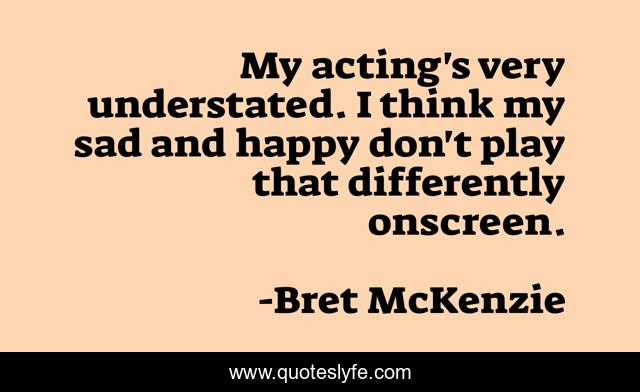 This page presents the quote "My acting's very understated. I think my sad and happy don't play that differently onscreen.". Author of this quote is Bret McKenzie. This quote is about acting, think, happy,.