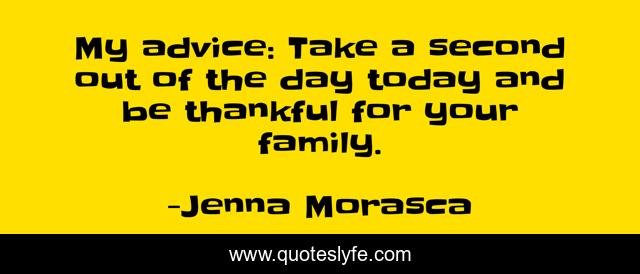 This page presents the quote "My advice: Take a second out of the day today and be thankful for your family.". Author of this quote is Jenna Morasca. This quote is about thankful, day, today,.