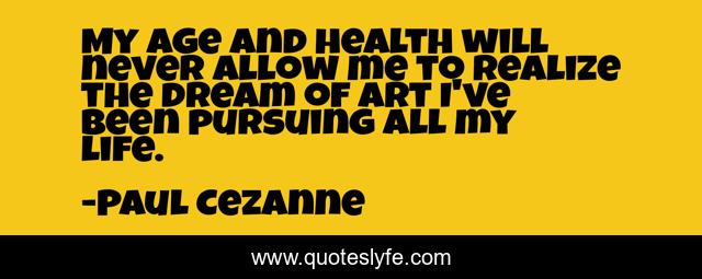 This page presents the quote "My age and health will never allow me to realize the dream of art I've been pursuing all my life.". Author of this quote is Paul Cezanne. This quote is about art, life, health,.