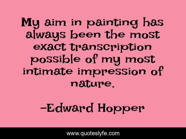 This page presents the quote "My aim in painting has always been the most exact transcription possible of my most intimate impression of nature.". Author of this quote is Edward Hopper. This quote is about aim, impression, painting,.
