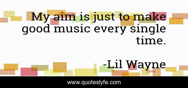 This page presents the quote "My aim is just to make good music every single time.". Author of this quote is Lil Wayne. This quote is about aim, good, time,.