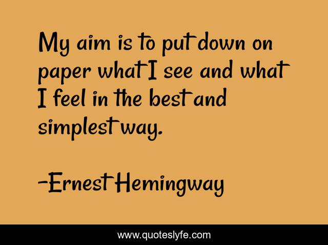 This page presents the quote "My aim is to put down on paper what I see and what I feel in the best and simplest way.". Author of this quote is Ernest Hemingway. .