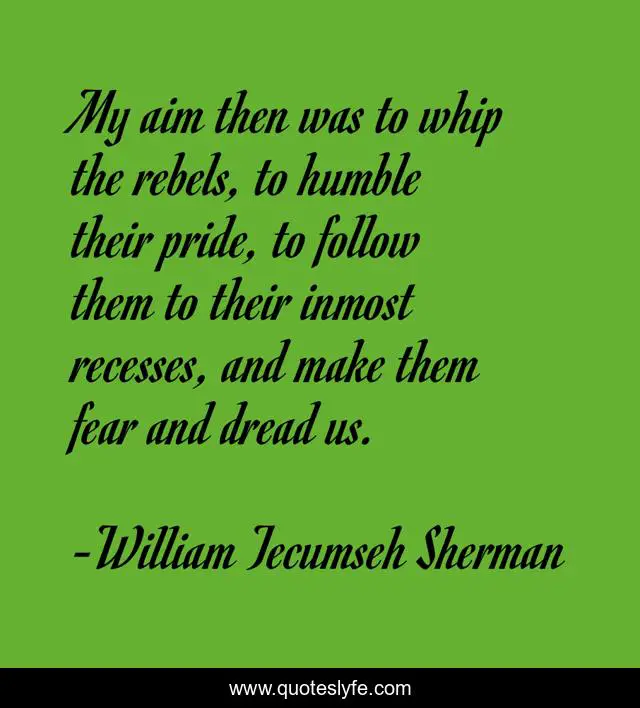 "William Tecumseh Sherman Quotes." Quoteslyfe.com, 2025. Sat. 06 Dec. 2025. <https://www.quoteslyfe.com/quote/My-aim-then-was-to-whip-the-308123>.