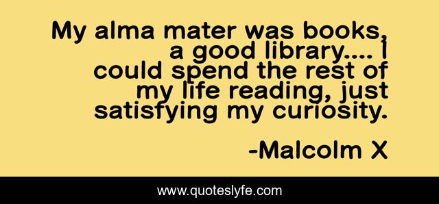 This page presents the quote "My alma mater was books, a good library.... I could spend the rest of my life reading, just satisfying my curiosity.". Author of this quote is Malcolm X. This quote is about books, reading,.