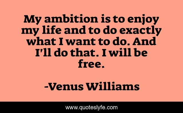 This page presents the quote "My ambition is to enjoy my life and to do exactly what I want to do. And I'll do that. I will be free.". Author of this quote is Venus Williams. This quote is about freedom, ambition,.