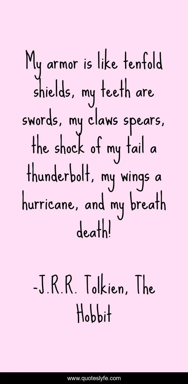 "J.R.R. Tolkien, The Hobbit Quotes." Quoteslyfe.com, 2025. Sun. 07 Dec. 2025. <https://www.quoteslyfe.com/quote/My-armor-is-like-tenfold-shields-my-104114>.