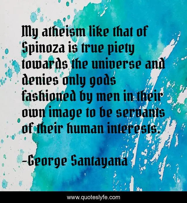 This page presents the quote "My atheism like that of Spinoza is true piety towards the universe and denies only gods fashioned by men in their own image to be servants of their human interests.". Author of this quote is George Santayana. .