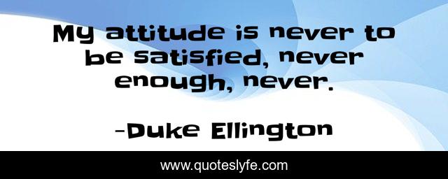 This page presents the quote "My attitude is never to be satisfied, never enough, never.". Author of this quote is Duke Ellington. This quote is about enough, leadership,.