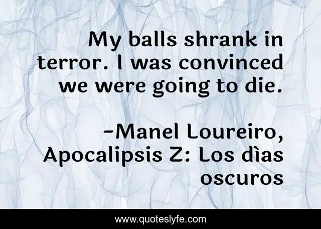 "Manel Loureiro, Apocalipsis Z: Los días oscuros Quotes." Quoteslyfe.com, 2025. Mon. 08 Dec. 2025. <https://www.quoteslyfe.com/quote/My-balls-shrank-in-terror-I-was-250047>.