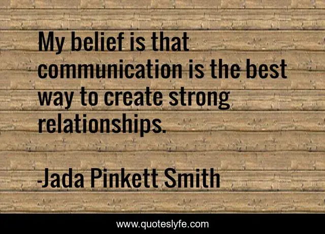 This page presents the quote "My belief is that communication is the best way to create strong relationships.". Author of this quote is Jada Pinkett Smith. This quote is about relationships, strong, best,.