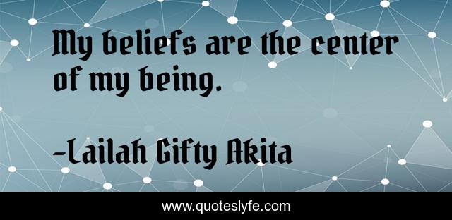 This page presents the quote "My beliefs are the center of my being.". Author of this quote is Lailah Gifty Akita. This quote is about being-real, belief, being, being-yourself, belief-in-self, belief-in-god, belief-system, beliefs, belief-in-humanity,.