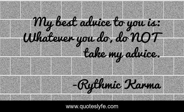 This page presents the quote "My best advice to you is: Whatever you do, do NOT take my advice.". Author of this quote is Rythmic Karma. This quote is about advice, learning,.