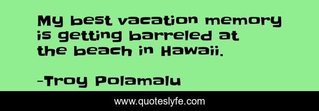 This page presents the quote "My best vacation memory is getting barreled at the beach in Hawaii.". Author of this quote is Troy Polamalu. This quote is about beach, vacation, memory,.