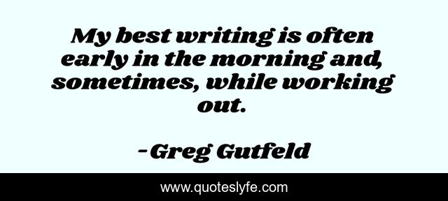 This page presents the quote "My best writing is often early in the morning and, sometimes, while working out.". Author of this quote is Greg Gutfeld. This quote is about best, working, writing,.