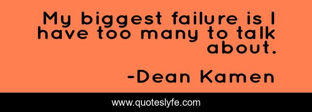 This page presents the quote "My biggest failure is I have too many to talk about.". Author of this quote is Dean Kamen. This quote is about biggest, many, talk,.