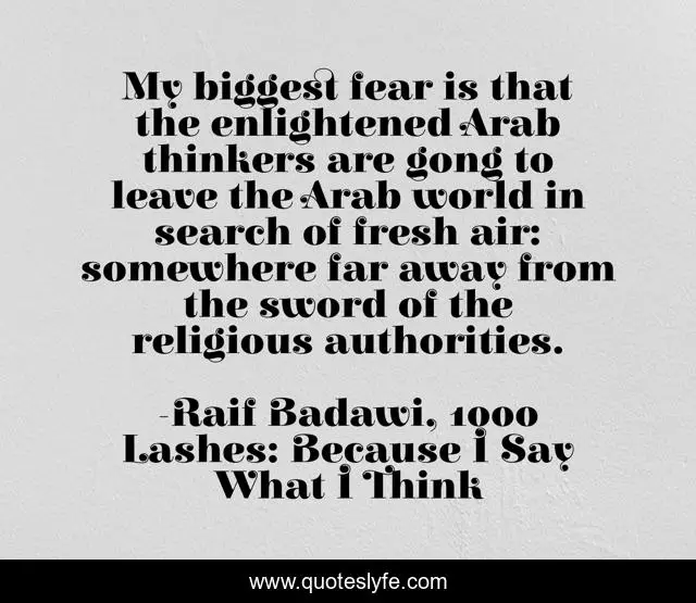 "Raif Badawi, 1000 Lashes: Because I Say What I Think Quotes." Quoteslyfe.com, 2025. Sat. 06 Dec. 2025. <https://www.quoteslyfe.com/quote/My-biggest-fear-is-that-the-enlightened-102567>.