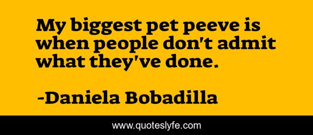 This page presents the quote "My biggest pet peeve is when people don't admit what they've done.". Author of this quote is Daniela Bobadilla. This quote is about admit, done, people,.