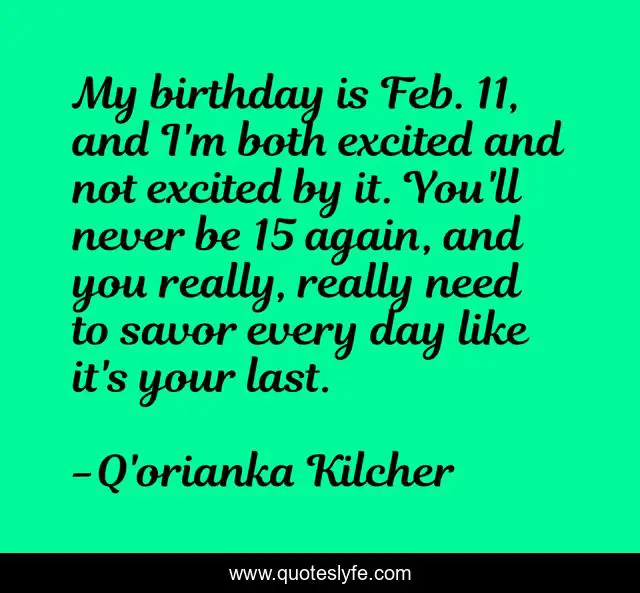 This page presents the quote "My birthday is Feb. 11, and I'm both excited and not excited by it. You'll never be 15 again, and you really, really need to savor every day like it's your last.". Author of this quote is Q'orianka Kilcher. This quote is about every day, day,.