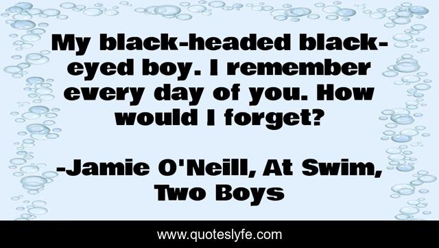 This page presents the quote "My black-headed black-eyed boy. I remember every day of you. How would I forget?". Author of this quote is Jamie O'Neill, At Swim, Two Boys. This quote is about family, memory,.